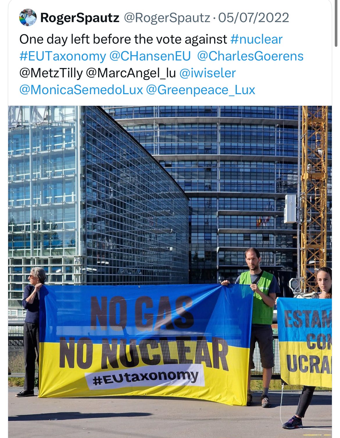 Bolstered by their success, their antics continue to this day. In 2022, when nuclear plants were keeping the lights on while Russian missiles targeted the energy grid in Ukraine, Greenpeace saw an opportunity to use the crisis to lobby against the inclusion of nuclear in the EU’s green taxonomy. In fact, amidst the war, the Ukrainian government had publicly confirmed its commitment to those same power plants, since for Ukrainians, they were the difference between heating their homes and freezing to death in sub-zero winters. This did not matter to the activists.